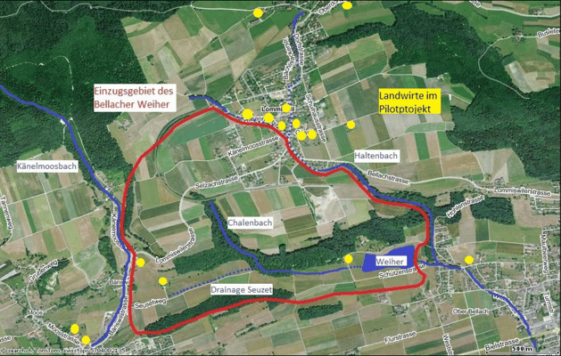 Nicht nur der Weiher selbst, auch das Umfeld muss bei einer umfassenden Sanierung miteinbezogen werden! Ein durch die Gemeinde Bellach unterstütztes Pilotprojekt unterstützt alle Bauern im Einzugsgebiet des Bellacher Weihers, die am Weiher erfolgreich eingesetzten Plocher-Produkte auch in der angrenzenden Landwirtschaft einzusetzen. So soll der übermässige Nährstoffeintrag in den Weiher reduziert und die Verlandung des Kleingewässers verlangsamt werden.